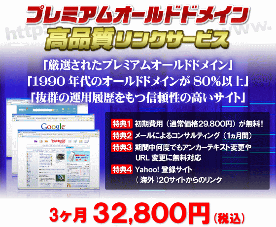 このプレミアムオールドドメイン高品質リンクサービスは、ホームページやブログをお持ちの