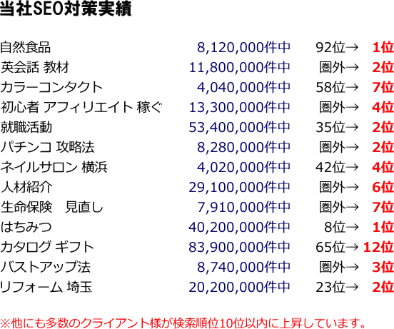 検索エンジン対策の効果には、弊社の創業者(現在は会長)も驚いていまして、